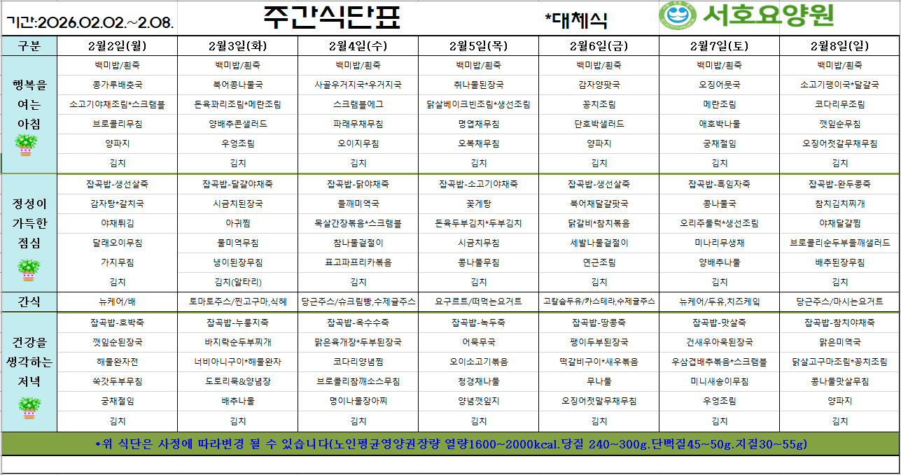 홈커뮤니티주간식단표 주간식단표 2026.02.02.~02.08.주간식단표 작성자 kli63a 작성일 2026-01-28 13:54 조회 22 좋아요 0 싫어요 0 인쇄 전체 0 추천순 작성순 최신순 작성자 비밀번호 사진 첨부파일 « 2026.01.26.~2026.02.01.주간식단표 2026.02.09.~02.15. 주간식단표 » 목록보기 답글쓰기 글수정 글삭제 Powered by KBoard
